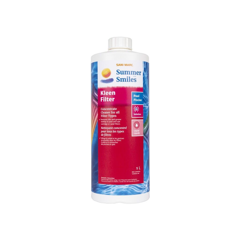 • KLEAN FILTER est un nettoyant concentré qui déloge efficacement les saletés, le tartre, la rouille, les huiles corporelles et les résidus de cosmétiques qui s’accumulent dans les filtres à sable et à cartouches réutilisables des piscines et spas. L’utilisation périodique de KLEAN FILTER permettra d’améliorer la performance du système de filtration et augmentera la durée d’utilisation de la cartouche ou du sable.