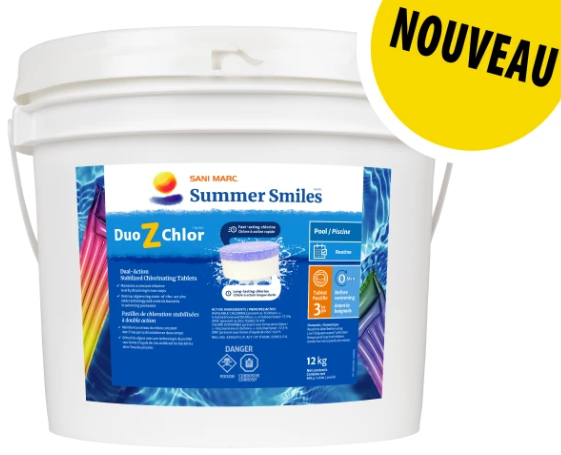 - DUO Z CHLOR est un assainissant formulé à base de deux types de chlore, l’un à dissolution rapide et l’autre à dissolution lente, qui agissent de façon complémentaire pour maintenir une désinfection constante de l’eau. Cette double action permet aussi une meilleure stabilité des paramètres et facilite l’entretien hebdomadaire de l’eau des piscines.