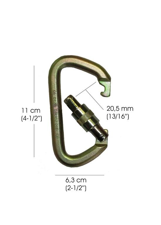 Ce mousqueton bloquant peut être utilisé pour attacher poulies, élingues ou encore un crochet au bout d’une corde lorsqu’une force supplémentaire est requise. En acier plaqué au nickel avec blocage vissé en aluminium anodisé. Sa grande ouverture est très appréciée puisqu'elle offre plus de place à l'utilisateur.